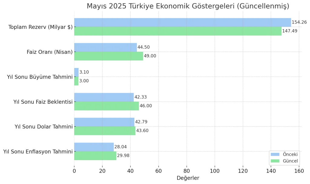 Türkiye ekonomik görünümünde Mayıs 2025 Gelişmeleri ve TCMB Faiz Kararı Mayıs 2025 itibariyle yaşanan gelişmeler, piyasalar ve yatırımcılar için oldukça çarpıcı oldu. Merkez Bankası’nın tarihi faiz artırımı kararı, enflasyon tahminleri, rezervlerdeki düşüş ve tüketici eğilimleri bu ayın öne çıkan ekonomik başlıkları arasında yer aldı. İşte detaylar…